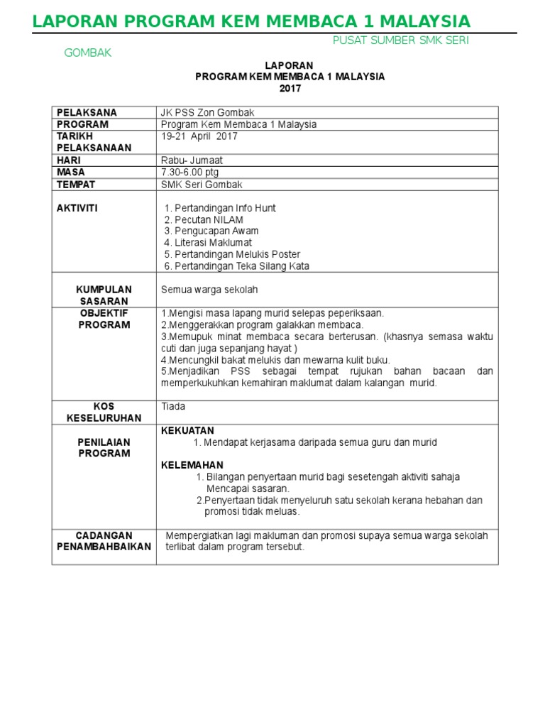 Laporan Kem Membaca 1 Malaysia Pdf
